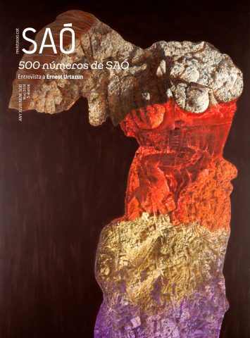 La portada és l’obra ‘Victòria i Foc’ del pintor Antoni Miró i el Quadern està dedicat a totes les persones que han fet possible aquestes cinc-centes revistes. El número inclou també una entrevista al ministre de Cultura, Ernest Urtasun Saó, la revista degana de la premsa en valencià –es va publicar per primera vegada en juliol de 1976- ha arribat al seu número 500 i ho celebra amb una edició especial que és un homenatge a totes les persones que han fet Saó en aquestes 500 revistes.