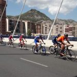 Una hora más tarde han aparecido los ciclistas, en tres grupos han recorrido las calles de nuestra ciudad antes de llegar al puerto de Benilloba. A la salida de Alcoy se han unido los dos grupos que estaban en cabeza, dejando el pelotón a 2.25 segundos.³