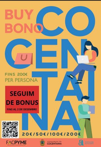 La regidoria de Promoció Econòmica ha reactivat la campanya dels ‘Bons Consum’ amb bons per valor de 20, 50, 100 i 200 euros, els quals es podran adquirir de forma electrònica a través de la pàgina web http://cocentaina.bonosconsumo.es/. S’ha decidit ampliar el termini fins als 2 de desembre per tal de garantir el consum de totes aquelles persones que no van poder accedir al bo durant l’anterior campanya, finalitzada el 25 d’octubre. Cada persona tindrà un màxim de 200 euros que podrà emprar en les seues compres als establiments adherits, els quals es poden consultar a la mateixa pàgina web.