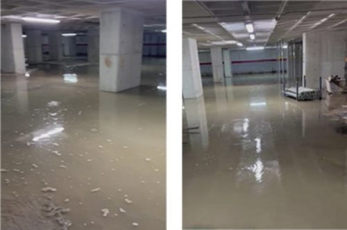 Una vez se pudo acceder a estas dependencias encontraron una gran cantidad de residuos depositados a la sala de bombas del sistema contraincendios del edificio y los lavabos que tuvieron que retirar.