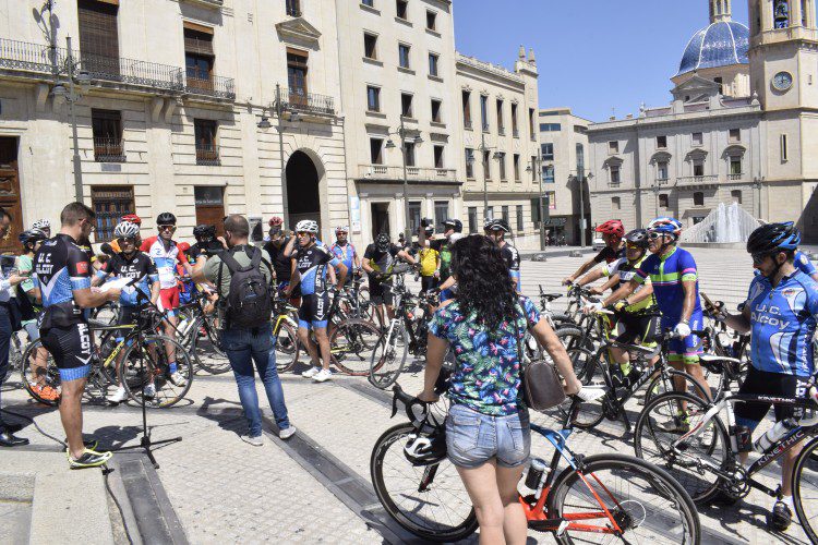 CONCENTRACIÓN CICLISTA EN LA PLAZA DE ESPAÑA DE ALCOY PARA CONDENAR LOS ATROPELLOS