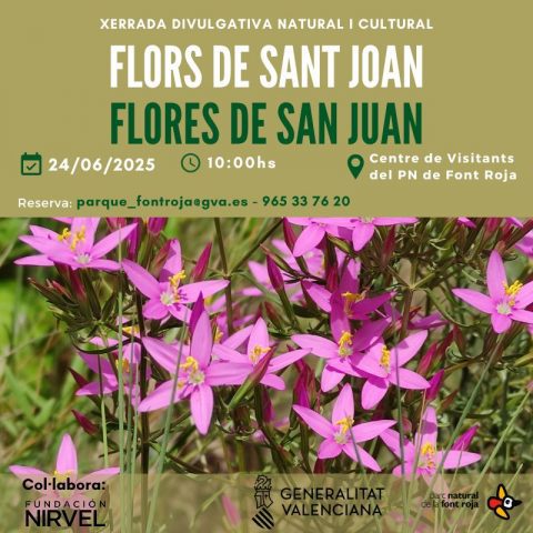 23 junio, 2025Hi ha nombroses plantes que tenen la seua floració al voltant de la data de Sant Joan, el 24 de juny. És per això que fem una xerrada divulgativa per a reconèixer aquestes «plantes santjoaneres», i mostrar també els seus usos tradicionals i curiositats sobre el solstici d’estiu.