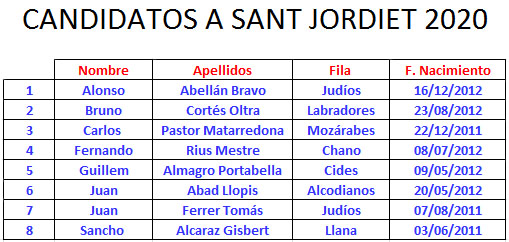 Cerrado el plazo para la presentación de candidatos, son ocho los niños que entrarán en el sorteo. A continuación os dejamos la lista de todos los candidatos: