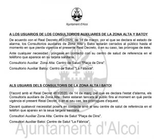 Comunicado Ajuntament Consultorios Cami y Batoy