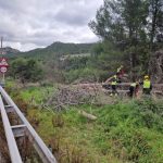 Los bomberos de la Muntanya retiran de forma preventiva un pino seco en la zona de El Molinar por el riesgo de fuertes rachas de viento