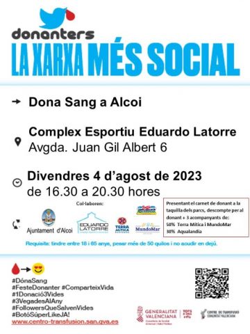 Des del departament destaquen els resultats de les donacions periòdiques que es realitzen al Complex Esportiu Eduardo Latorre, on han participat més de 800 persones. També, a altres centres de donació com el CIPFP de Batoi o diferentes col·legis d’Alcoi han donat sang més de 500 persones en total.