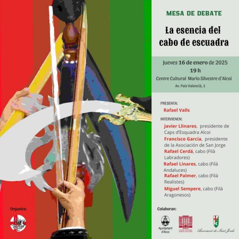 El próximo Jueves 16 de Enero de 2025 a las 19’00 horas tendrá lugar en la Casa de Cultura de Alcoy, una Mesa Redonda sobre los cabos de escuadra presentada por Rafael Valls, en la que intervendrán; Jordi Linares, Francisco García, Rafael Cerdá, Rafael Linares, Rafael Palmer y Miguel Sempere.