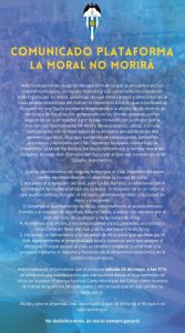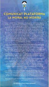 El PP denuncia que «Han tenido que pasar 13 años para que al gobierno de Toni Francés le importe el mantenimiento y limpieza de Alcoy»16 mayo, 2024Cocentaina impulsa dos tallers a favor de la igualtat i la prevenció de la violència de gènere17 mayo, 2024 NACE LA PLATAFORMA «LA MORAL NO MORIRA» 16 mayo, 2024 Categorías DEPORTES Etiquetas Club Deportivo AlcoyanoPlataforma LA Moral No Morirá La afición blanquiazul se moviliza ante un posible descenso o desaparición del C.D. Alcoyano y crea la plataforma «La Moral No Morirá». Desde la plataforma han realizado un primer comunicado. Compartir Artículos relacionados23 febrero, 2026Este domingo 1 de marzo se celebra la XLVII Subida a la Font Roja de Atletismo en AlcoyLeer más21 febrero, 2026El Alcoyano corta la sequía goleadora empatando en campo del Barça AtlèticLeer más Deja una respuesta Cancelar la respuestaTu dirección de correo electrónico no será publicada. Los campos obligatorios están marcados con *Comentario * Nombre * Correo electrónico * Web Guarda mi nombre, correo electrónico y web en este navegador para la próxima vez que comente. Δ