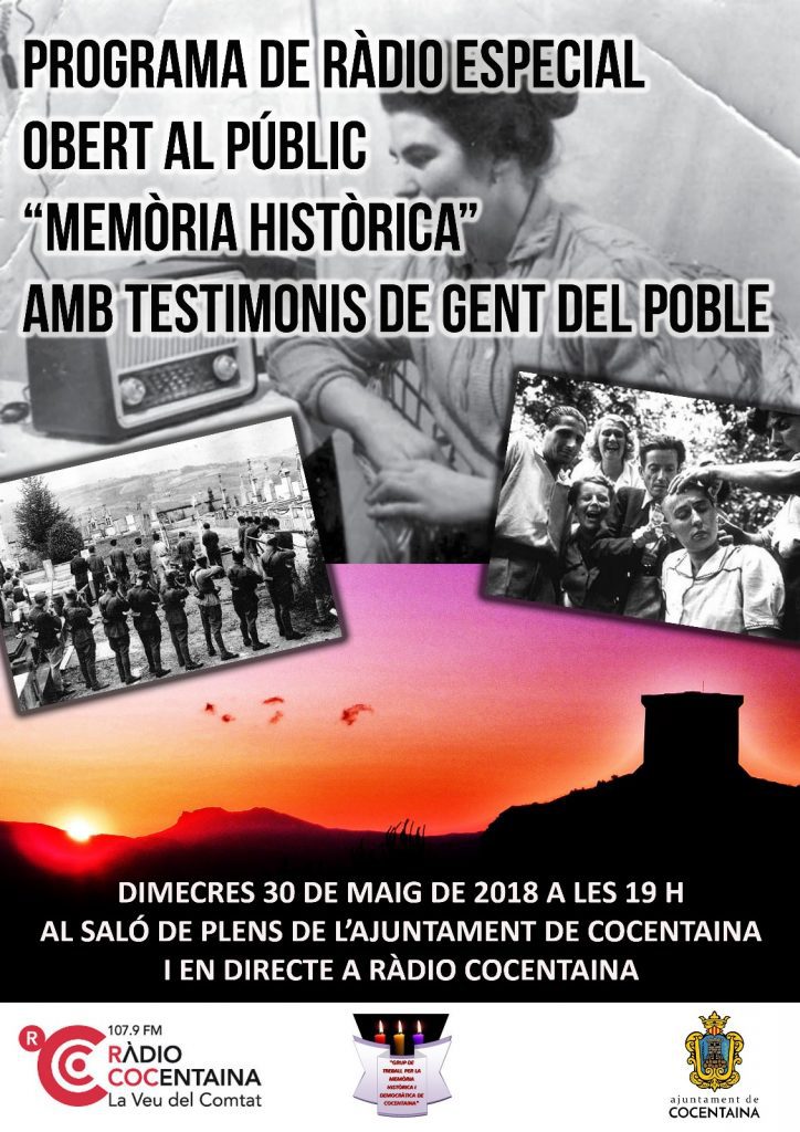 Programa de ràdio amb testimonis i obert al públic, nou acte del Grup de Treball per la Recuperació de la Memòria Històrica i Democràtica de Cocentaina.