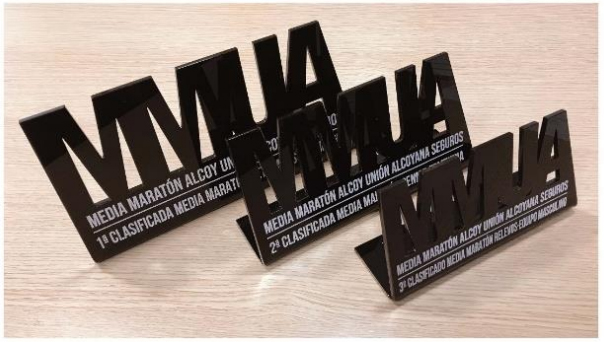 Los trofeos se modifican con respecto a años anteriores, para dar una imagen más identificativa de la carrera, siendo el material utilizado para su fabricación metraquilato de color negro con inscripción en blanco, todo ello sobre el logo de las iniciales de la carrera MMUA.