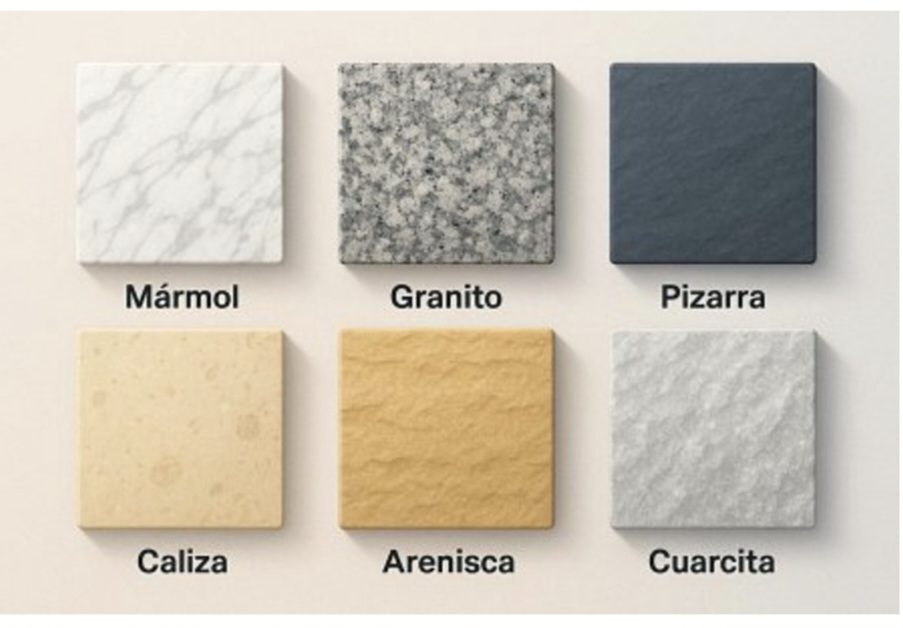 • Arenisca: Hecha de granos de arena, disponible en varios colores y texturas naturales.