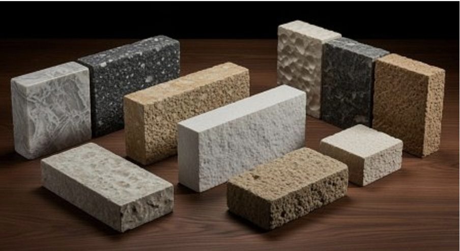 Los ladrillos de piedra natural se hacen de distintas clases de roca. Los más usuales en construcción son mármol, granito, pizarra, caliza, arenisca y cuarcita, cada uno con cualidades propias: