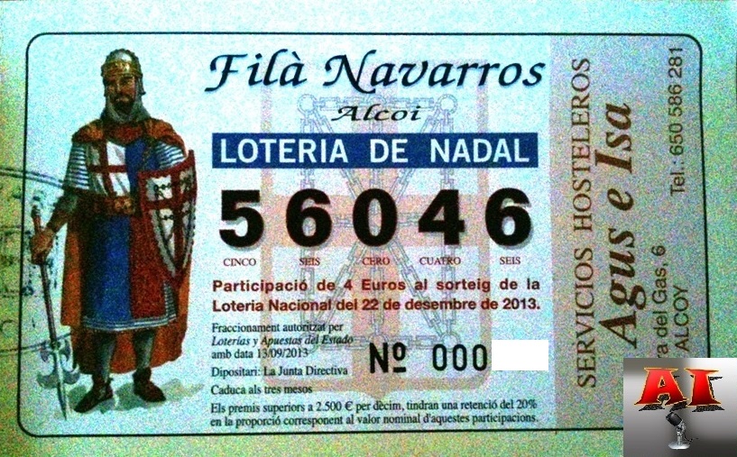 La Filà Navarros (56.046), Asturianos, Cides y la peña Huestes Blanquiazules (11.346), han sido agraciados con 120 euros al décimo, al coincidir con la terminación del Gordo, el 46.