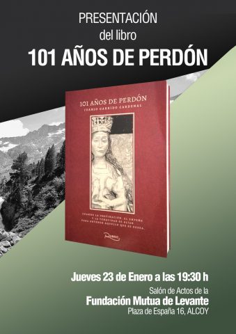 El próximo jueves 23 de enero tendrá lugar la presentación del libro «101 AÑOS DE PERDÓN» de Juanjo Garrido Cardenal a las 19.30h en el Salón de actos de la Fundación Mutua de Levante en Plaza España 16.