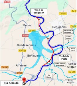 En cuanto a la variante II de Beniganim, la propuesta es análoga con la diferencia de que requiere una inversión adicional más cuantiosa, al no haber ninguna interferencia con la explotación del embalse de Bellús, concretamente del 5%.
