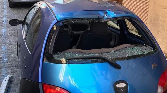 UN COCHE ESTACIONADO EN LA CALLE MOSSÈN TORREGROSA SUFRE DAÑOS TRAS CAERLE PARTE DE UN BALCÓN ACRISTALADO