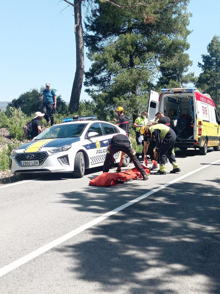 30 mayo, 2022Aquí se puede ver el video del trasporte en camilla de una mujer de 59 años que tuvo que ser rescatada el sábado por la mañana con doble fractura en la pierna derecha, al sufrir una caída mientras realizada senderismo en la ruta del elefante en la Font Roja de Alcoy