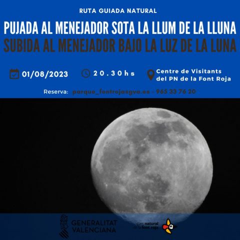 Fecha: martes, 01 de agosto de 2023. Horario y lugar de inicio: 20:30 h. en el Centro de Visitantes de la Font Roja