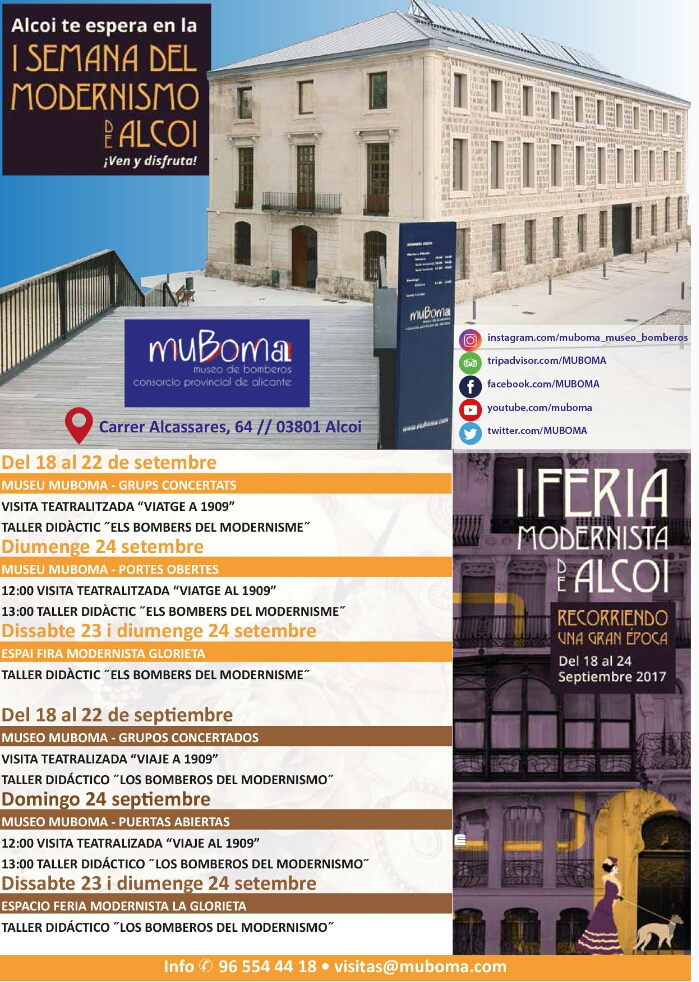 Del 18 al 22 de setembre MUSEU MUBOMA – GRUPS CONCERTATS VISITA TEATRALITZADA “VIATGE A 1909” TALLER DIDÀCTIC ˝ELS BOMBERS DEL MODERNISME˝ Diumenge 24 setembre MUSEU MUBOMA […]