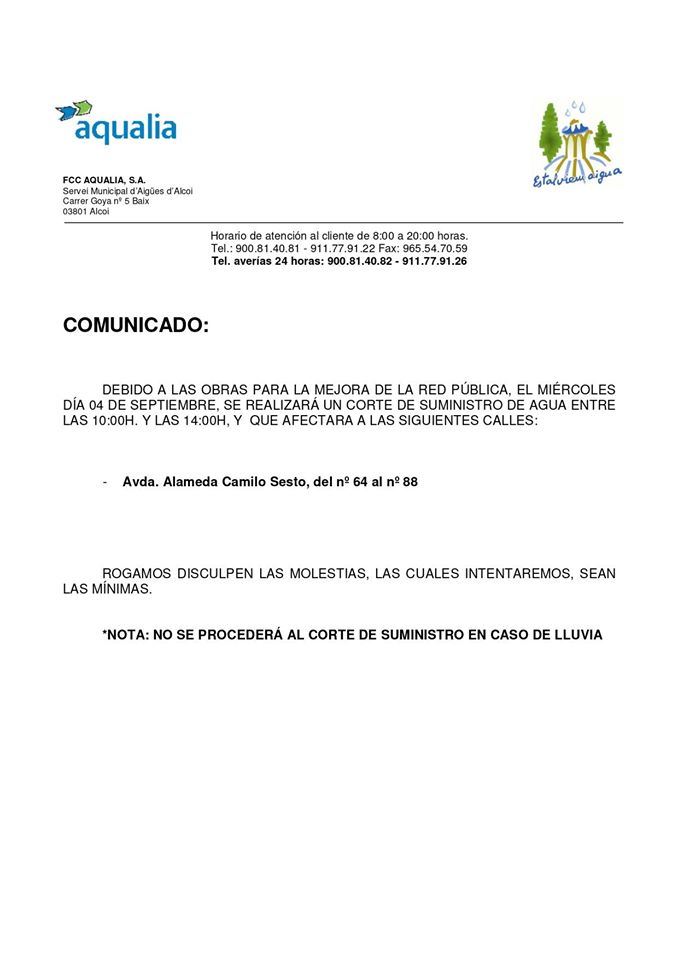 AQUALIA PROCEDERÁ A UN CORTE DE SUMINISTRO PARA LA MEJORA DE LA RED PÚBLICA