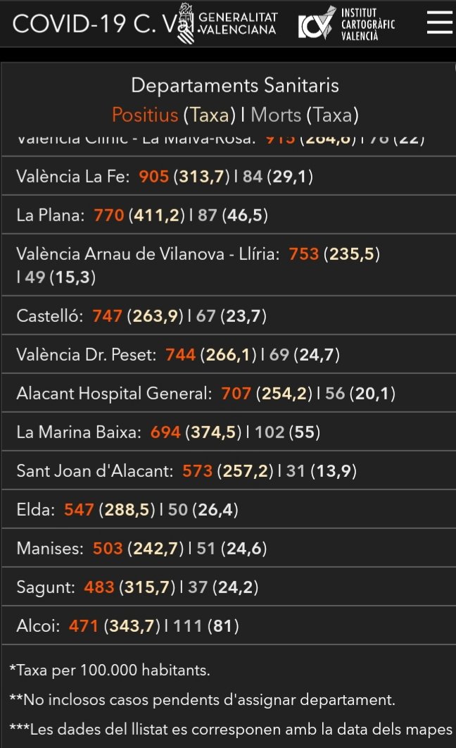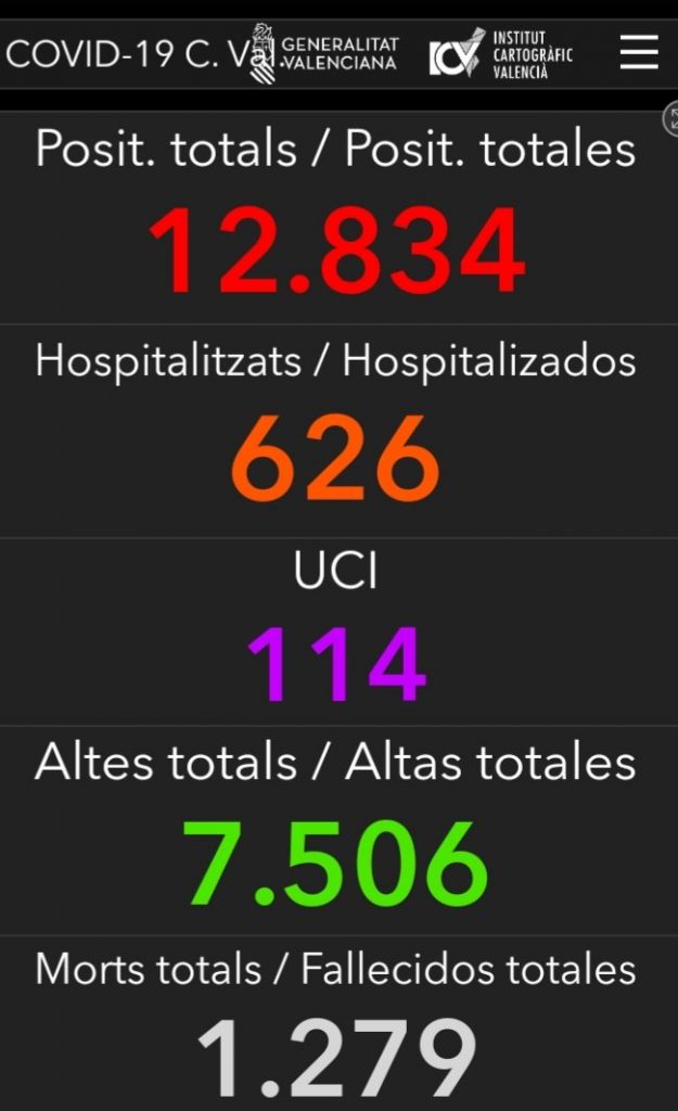 Segun la información facilitada por Sanidad, los infectados se mantienen en 471 y son 111 los fallecidos por el COVID-19. Mientras que en la Comunidad Valenciana, hay 12.834 positivos y 1.279 muertes según las cifras oficiales.