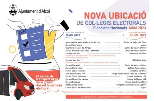 12 julio, 2023Hi haurà nous col·legis electorals amb les condicions idònies per a les votacions del 23 de juliol. S’habilitarà un autobús especial.