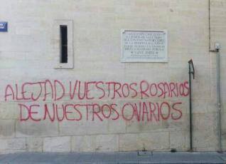 La pintada en color rojo protestaba sobre la normativa del aborto que esta preparando el Gobierno nacional del Partido Popular.