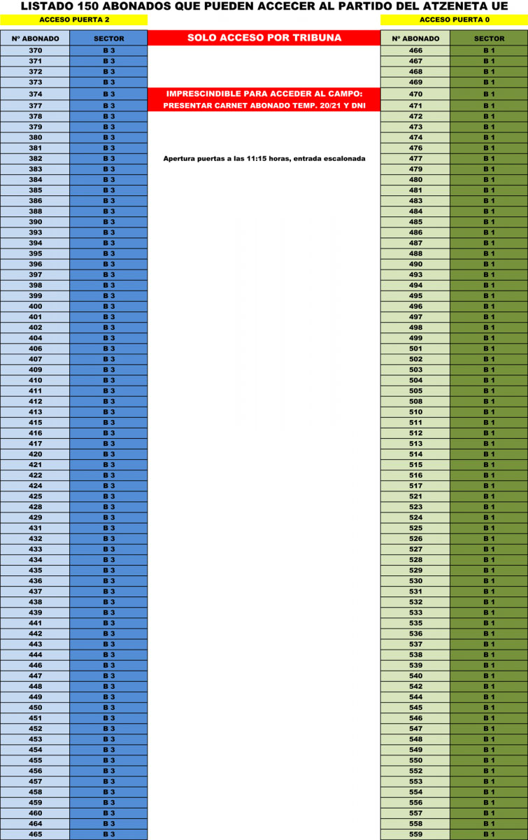 En el siguiente partido, de Copa del Rey previsto para el 17 de Diciembre, accederán al campo 150 personas (o la cifra que establezca Sanidad), siguiendo el orden correlativo de abonados desde el número 559.